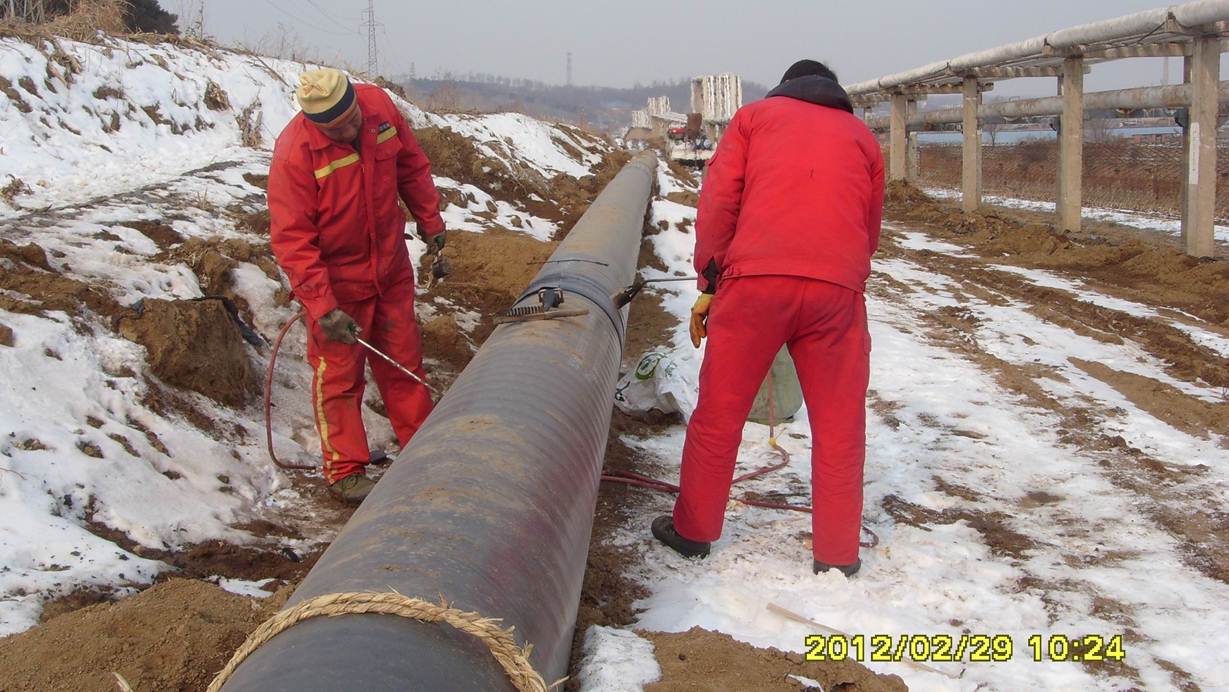 监理人员检查管线补口质量